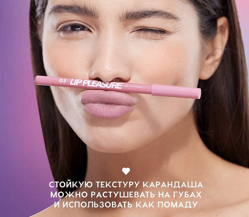 Сплошное удовольствие для твоих губ! Стойкий гелевый карандаш поможет создать идеальный контур. Сделай с ним макияж и отправляйся на свидание, прогулку, в музей — карандаш LIP PLEASURE останется на твоих губах при любых условиях. Он не сушит кожу, идеально прорисовывает контур и не растекается в течение дня.