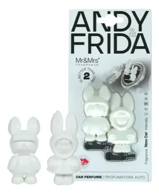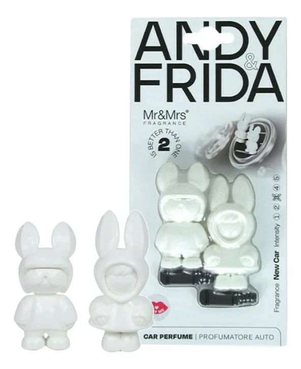 Ароматизатор Andy Frida New Car от Mr Mrs Fragrance предназначен для автомобиля. Аксессуар с дизайном от Румико Такеда состоит из двух оригинальных фигурок, которые крепятся на вентиляционной решетке и под действием потока воздуха наполняют салон свежим благоуханием, достойным нового автомобиля.
