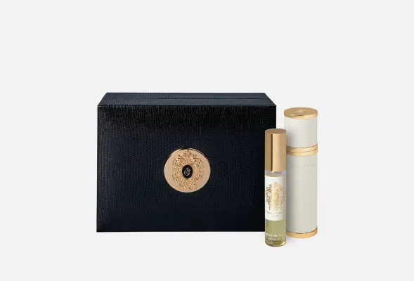 Этот набор является идеальным подарком или удобным вариантом для путешествий. В состав набора входят 2 виалы с духами Cassiopea с откручивающейся помпой для перезаполнения. Также в наборе находится золотой металлический футляр для виал с вставками из экокожи, чтобы ваш любимый аромат всегда был под рукой!